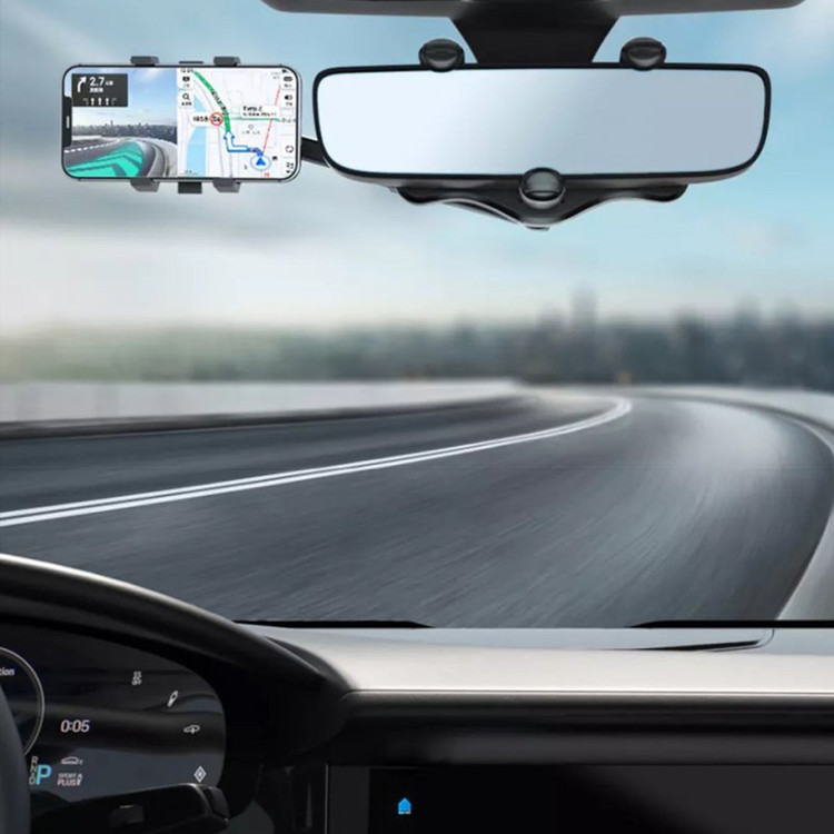 این محصول به راحتی بر روی آینه خودرو نصب شده و در نگه داشتن گوشی موبایل در خودرو و استفاده ی آن در حین رانندگی برای مسیریابی کمک میکند.